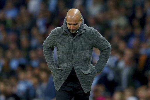 Guardiola's side was knocked out of a competition for the first time this season after a title in the League Cup and advancement to the FA Cup final while challenging Liverpool for the league title.