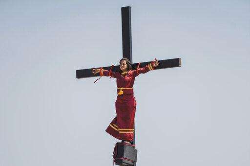 SAN PEDRO CUTUD, Philippines (AP) - Several Roman Catholic devotees were nailed to wooden crosses in a gory Good Friday ritual in the Philippines, and others flogged themselves or took part in religious plays to reenact Jesus Christ's suffering.
