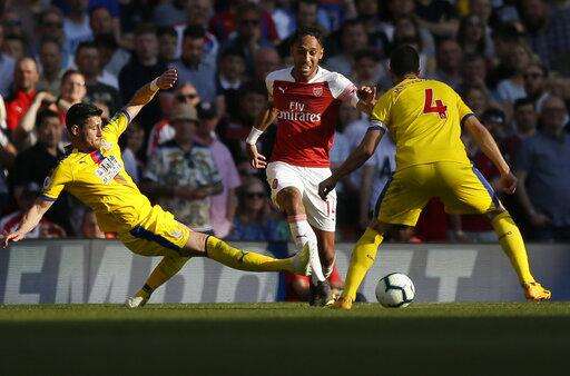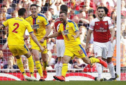 LONDON (AP) - Christian Benteke's first goal in almost a year set Crystal Palace on its way to a 3-2 victory at Arsenal in the Premier League on Sunday, denting the north London club's top-four bid.