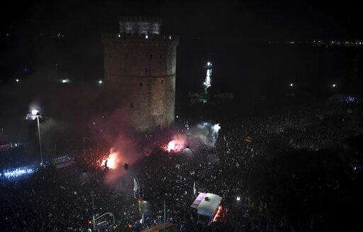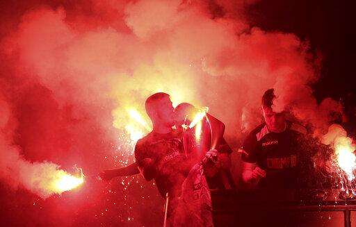 PAOK fans gather to celebrate their team's Greek Super League championship title in Thessaloniki, northern Greece, early Monday, April 22, 2019. PAOK won the Greek league with a round to spare after beating Levadiakos 5-0, 34 years after the last time the team won the championship. (AP Photo/Giannis Papanikos) The Associated Press