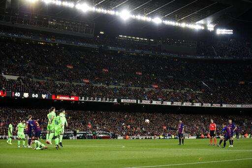 Barcelona's win put it nine points ahead of second-placed Atletico Madrid with three rounds to play. Barcelona holds the tiebreaker with Atletico on head-to-head goals.