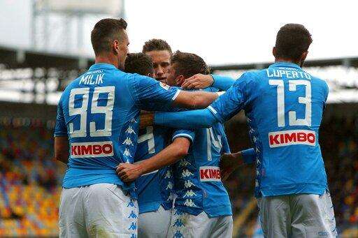 ROME (AP) - Dries Mertens matched Diego Maradona with his 81st Serie A goal for Napoli and Carlo Ancelotti's squad bounced back from a run of poor results for a 2-0 win at relegation-threatened Frosinone on Sunday.