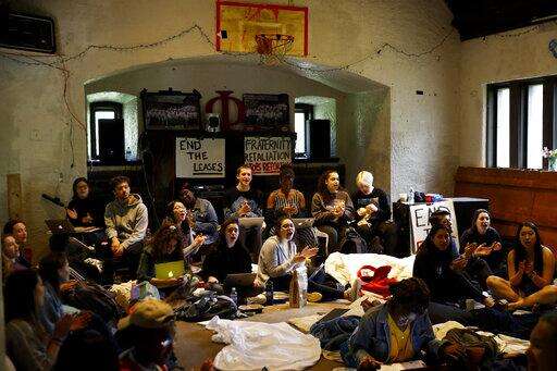 The demonstration is aimed at shutting down the Phi Psi chapter at the private liberal arts school in suburban Philadelphia. On Monday morning, about 30 students were sitting at the college-owned building, which is mainly used for Phi Psi parties and other social activities. As many as 100 protesters were there over the weekend.