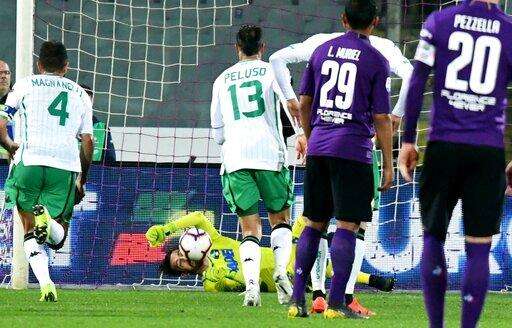 Domenico Berardi scored in the first half and Fiorentina midfielder Jordan Veretout had a penalty saved by Andrea Consigli minutes later.