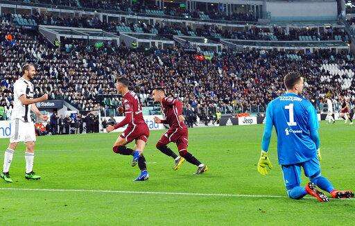 Torino remained sixth, two points below fourth-place Atalanta for the final Champions League berth, ahead of the rest of the weekend's games. Juventus has already won its eighth consecutive league title.