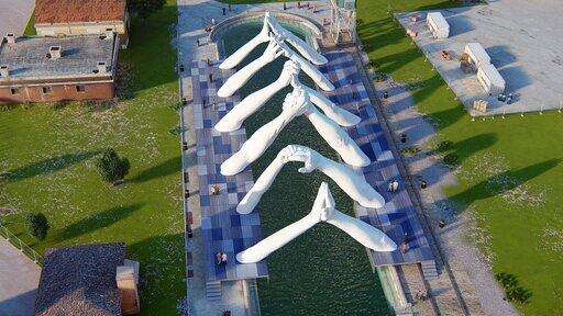 MILAN (AP) - Italian artist Lorenzo Quinn created a splash on the sidelines of the Venice Biennale contemporary art fair two years ago with a gigantic sculpture of a child's hands reaching out of the Grand Canal, calling attention to climate change that threatens, among other things, to sink the lagoon city.