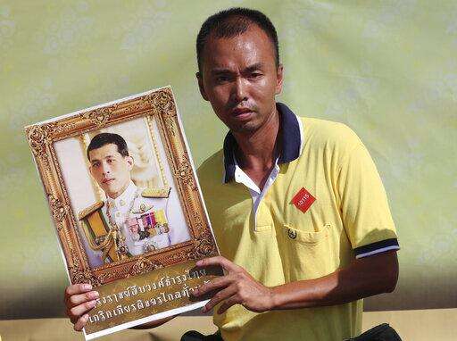 A Thai well-wisher holds the portrait of Thailand's King Maha Vajiralongkorn outside Grand Palace in Bangkok, Thailand, Saturday, May 4, 2019.After a more than a decade of political strife, including a military coup and a contentious election less than two months ago, the people of Thailand are witnessing this weekend the coronation of King Maha Vajiralongkorn in a centuries-old royal tradition that last happened seven decades ago.(AP photo/Sakchai Lalit)