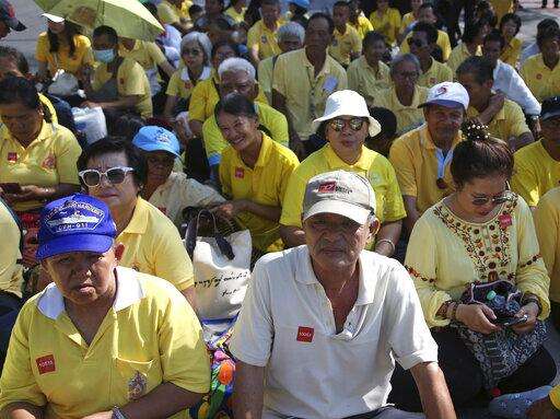 Thai people wait outside Grand Palace in Bangkok, Thailand, Saturday, May 4, 2019. After a more than a decade of political strife, including a military coup and a contentious election less than two months ago, the people of Thailand are witnessing this weekend the coronation of King Maha Vajiralongkorn in a centuries-old royal tradition that last happened seven decades ago. (AP photo/Sakchai Lalit)