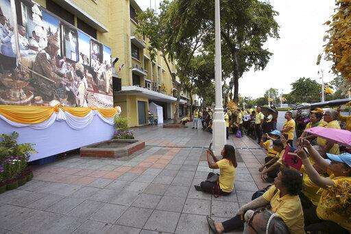 Despite not being able to see the king in person, civil servants in uniform and members of the public wearing garb in the royal color of yellow gathered outside the Grand Palace to pay their respects.