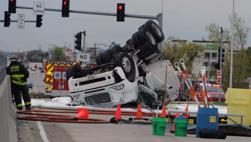 Elmhurst Road closed near I-90 after tanker truck overturns