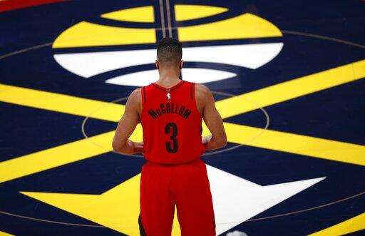McCollum raced to stop a breakaway layup by Jamal Murray, who had a miserable night shooting, missing 14 of 18 shots.