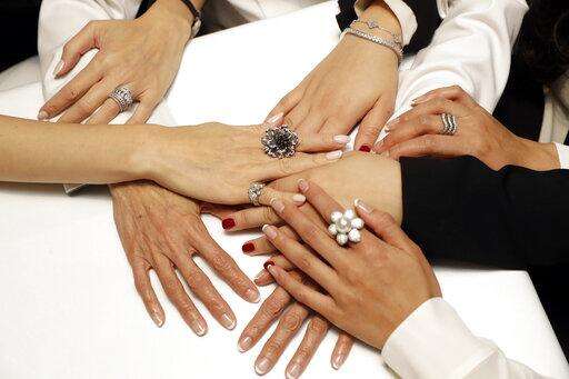 Members of the An family hold hands as they pose for a portrait at the family's restaurant Crustacean Beverly Hills Monday, May 13, 2019, in Beverly Hills, Calif. On May 18, the Smithsonian Asian Pacific American Center launches a $25 million fundraising drive for permanent gallery space on the National Mall in Washington, D.C. with a glitzy party in Los Angeles full of celebrities and politicians. (AP Photo/Marcio Jose Sanchez) The Associated Press