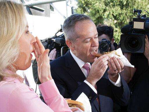 Australian opposition leader Bill Shorten and his wife Chloe eat a sausage sandwich on a federal election day in Melbourne, Australia, Saturday, May 18, 2019. Polling stations opened across Australia on Saturday in elections that are likely to deliver the nation's sixth prime minister in as many years. (AP Photo/Andy Brownbill) The Associated Press