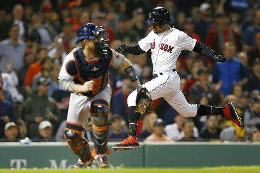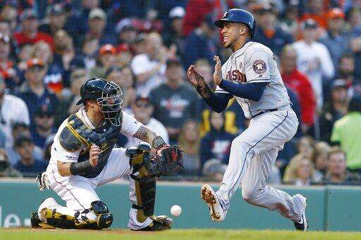 The first inning lasted 44 minutes. After Houston's big start, Boston loaded the bases on consecutive two-out walks and scored one run on Max Stassi's passed ball before Rafael Devers lined to left.