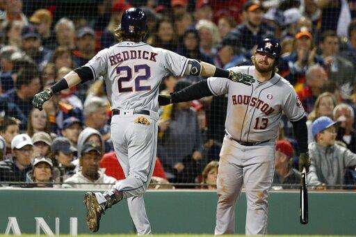 George Springer opened the game with a triple off the center-field wall, just over a leaping bid by Jackie Bradley Jr. on the first pitch. Brantley made it 1-0 with an RBI double over the head of right fielder Mookie Betts' leap at the shorter bullpen wall before Reddick's sacrifice fly.