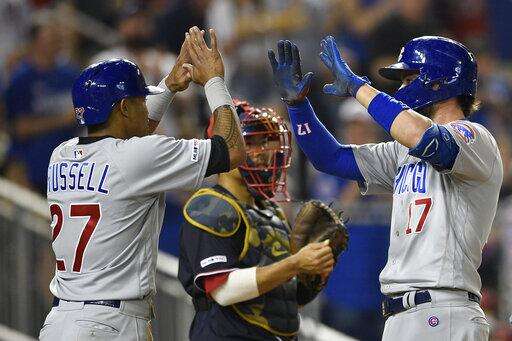 Schwarber broke open a one-run game in the eighth with a two-run homer against Kyle Barraclough that concluded a 13-pitch at-bat. Bryant followed two pitches later with his 10th homer.
