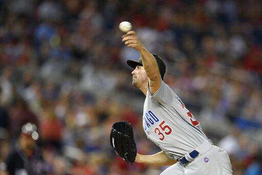 Chicago starter Cole Hamels (4-0) won for the fourth time in five starts. The left-hander tossed five effective innings, squirming out of two bases-loaded jams, as the Cubs improved to 7-2 in his nine starts this season.