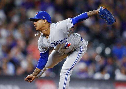 Toronto Blue Jays starting pitcher Marcus Stroman works against the Colorado Rockies in the seventh inning of a baseball game Saturday, June 1, 2019, in Denver. (AP Photo/David Zalubowski) The Associated Press