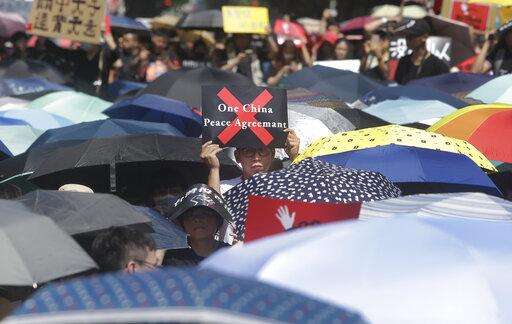 The call comes as Hong Kong residents gather for a march through the downtown on Sunday to protest a government plan to enact extradition legislation. Hong Kong's top leader said she was suspending the proposal but opponents want her to drop it for good.