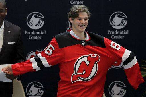 NEWARK, N.J. (AP) - The Devils introduced No. 1 overall pick Jack Hughes to New Jersey on Tuesday - even though he is already sharing the spotlight.