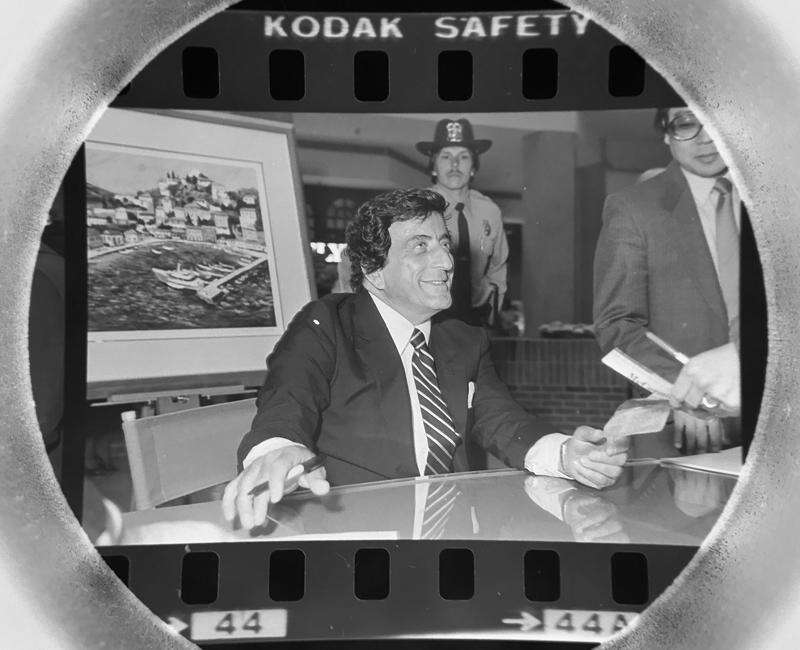 The Daily Herald archive, Assignment # 86,994, Gilbert Boucher photo: Singer Tony Bennett autographs prints of his oil paintings and drawings at Woodfield Mall in March of 1987.