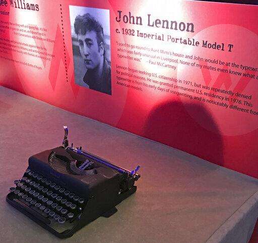 This March 9, 2019 photo shows a typewriter once owned by John Lennon and now on display in a special exhibit on typewriters at the American Writers Museum in Chicago. A younger generation is discovering the joy of the feel and sound of the typewriter. Two recent documentaries, "The Typewriter (In The 21st Century)" (2012) and "California Typewriter" (2016), featuring collector Tom Hanks, have helped popularize vintage typewriters among young people, who also have a soft spot for other analog technologies like vinyl records and fountain pens. (AP Photo/Julia Rubin) The Associated Press