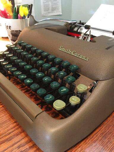 This June 28, 2019 photo shows a working Smith-Corona typewriter from the 1950s, for sale at the Gramercy Typewriter Co. in New York. Vintage typewriters are sent for repair and restoration daily from around the country, the owner of the store says. (Katherine Roth via AP) The Associated Press