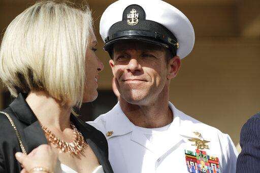 Earlier, Gallagher addressed the jury that acquitted him Tuesday of premeditated murder in the death of the captive and attempted murder and other charges in the shootings of civilians during a 2017 deployment to Iraq. He also was cleared on charges of impeding the investigation and retaliating against the SEALs who reported him.