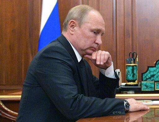 Russian President Vladimir Putin listens to Russian Defense Minister Sergei Shoigu during their meeting in the Kremlin in Moscow, Russia, Tuesday, July 2, 2019. A fire on one of the Russian navy's deep-sea submersibles killed 14 sailors, the Russian Defense Ministry said Tuesday without giving the cause of the blaze or saying if there were survivors. (Alexei Druzhinin, Sputnik, Kremlin Pool Photo via AP) The Associated Press
