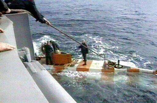 ADDITION TO GIVE FILE PHOTO DETAILS FILE - In this video grab provided by the RU-RTR Russian television via APTN and taken on Friday Aug. 18, 2000, Russia rescue personnel return from a dive in a mini submarine to the Kursk on the sea bed in the Barents Sea, Russia. A fire on one of the Russian navy’s deep-sea submersibles killed 14 sailors, the Russian Defense Ministry said Tuesday July 2, 2019, without giving the cause of the blaze or saying if there were survivors. (RU-RTR Russian Television via AP, File) The Associated Press