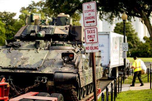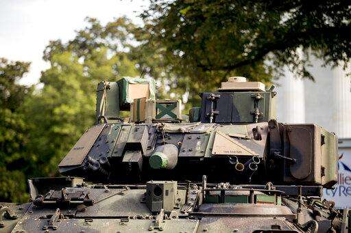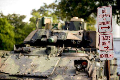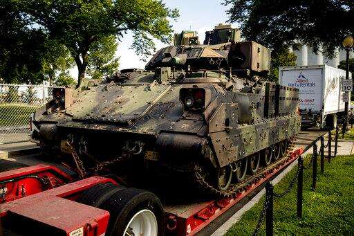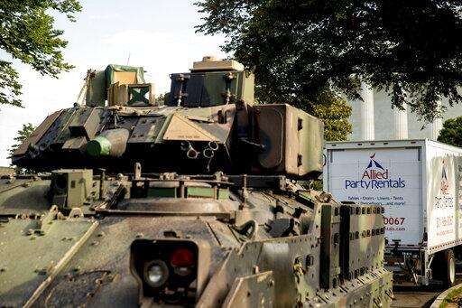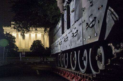 One of two Bradley Fighting Vehicles is parked nearby the Lincoln Memorial for President Donald Trump's 'Salute to America' event honoring service branches on Independence Day, Wednesday, July 3, 2019, in Washington. President Donald Trump is promising military tanks along with "Incredible Flyovers & biggest ever Fireworks!" for the Fourth of July. (AP Photo/Andrew Harnik)