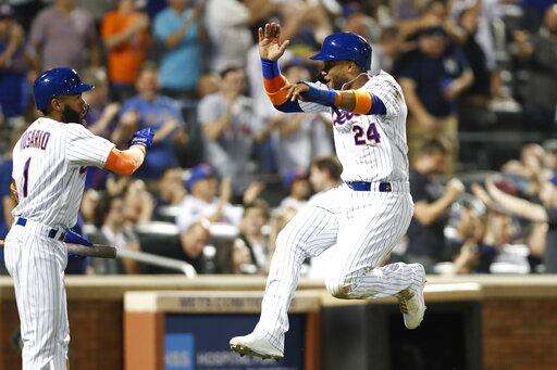 J.D. Davis did homer and also delivered a tying double to help the Mets rally from behind in the eighth for the second consecutive game. They scored five times in their final turn at bat Sunday night to beat the Braves, ending a seven-game slide.