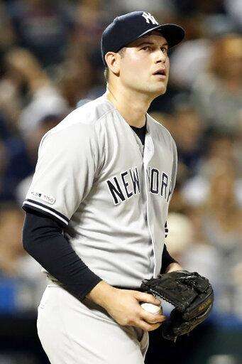 Yankees: 1B Luke Voit was placed on the 10-day injured list, retroactive to Sunday, after straining his abdomen in London. The team thinks Voit can return against Toronto during the weekend right after the All-Star break. ... Yankees catcher Gary Sánchez was in the cleanup spot after exiting Sunday's game with a jammed left thumb.