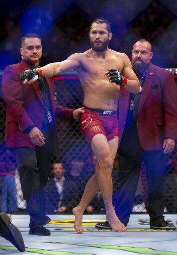 Jorge Masvidal celebrates his knockout victory over Ben Askren during their welterweight mixed martial arts bout at UFC 239, Saturday, July 6, 2019, in Las Vegas. Masvidal won by the fastest knockout in UFC history. (AP Photo/Eric Jamison) The Associated Press