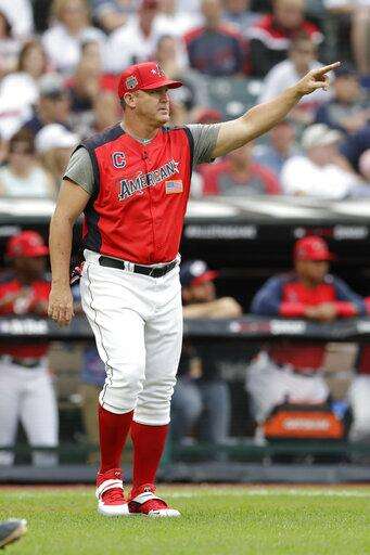 American League manager Jim Thome walks to the mound during the fourth inning of the MLB All-Star Futures baseball game, Sunday, July 7, 2019, in Cleveland. The MLB baseball All-Star Game is to be played Tuesday. (AP Photo/Tony Dejak) The Associated Press