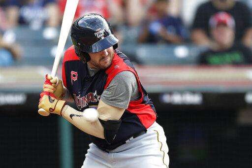 Will Craig, of the Pittsburgh Pirates, is hit by a pitch during the second inning of the MLB All-Star Futures baseball game, Sunday, July 7, 2019, in Cleveland. The 90th MLB baseball All-Star Game will be played Tuesday. (AP Photo/Tony Dejak) The Associated Press