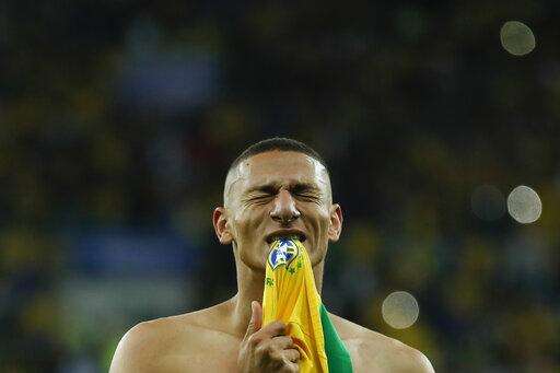 Gabriel Jesus and Richarlison also scored for Brazil, which has won the title every time it hosted the tournament.