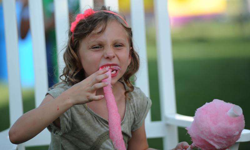 Raygan Thompson, 6, of Lake Zurich really digs into her sweet sticky cotton candy on a scorching summer day at the Lake Zurich's Lions Club annual Alpine Fest on Friday.