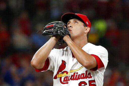 Giovanny Gallegos (3-1) retired Kyle Schwarber on a bases-loaded flyout that ended the sixth after he relieved Adam Wainwright, who allowed one run and five hits in 5 2/3 innings.