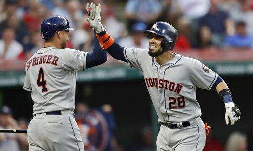 Robinson Chirinos hit a go-ahead homer in the two-run fifth, Michael Brantley had an RBI single and AL West-leading Houston won its third straight.