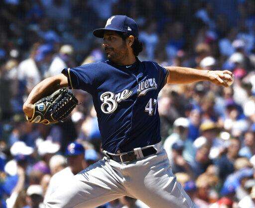 Milwaukee Brewers starting pitcher Gio Gonzalez (47) throws the ball against the Chicago Cubs during the first inning of a baseball game, Saturday, Aug. 3, 2019, in Chicago. (AP Photo/David Banks) The Associated Press