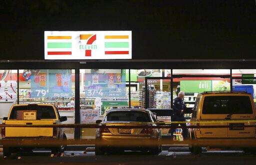 Police work the scene of a stabbing in Santa Ana, Calif., Wednesday, Aug. 7, 2019. A man killed multiple people and wounded others in a string of robberies and stabbings in California's Orange County before he was arrested, police said Wednesday. (AP Photo/Alex Gallardo) The Associated Press