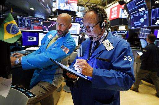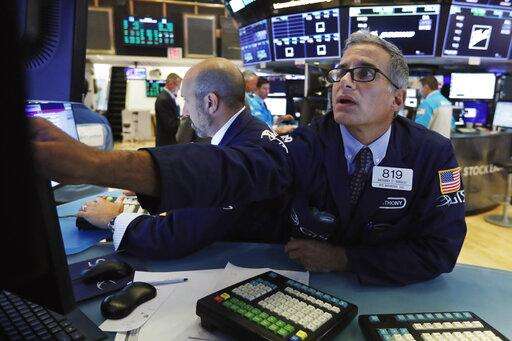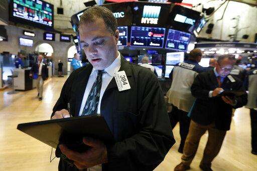 Specialist Michael Pistillo works on the floor of the New York Stock Exchange, Thursday, Aug. 8, 2019. Stock prices rose Thursday as investors braced for the next development in the U.S.-Chinese trade war, which has caused volatility in world markets this week, and after Beijing reported a rise in exports, easing some concerns about its economic slowdown. (AP Photo/Richard Drew) The Associated Press