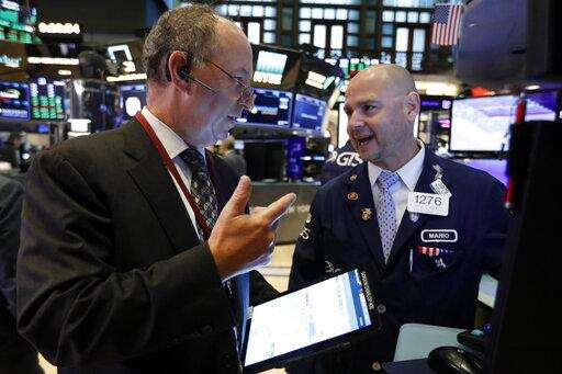 Trader Gordon Charlop, left, and specialist Mario Picone work on the floor of the New York Stock Exchange, Thursday, Aug. 8, 2019. Stock prices rose Thursday as investors braced for the next development in the U.S.-Chinese trade war, which has caused volatility in world markets this week, and after Beijing reported a rise in exports, easing some concerns about its economic slowdown. (AP Photo/Richard Drew) The Associated Press