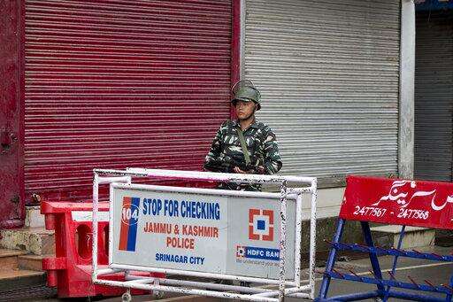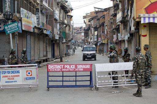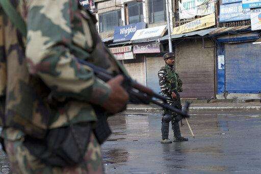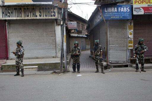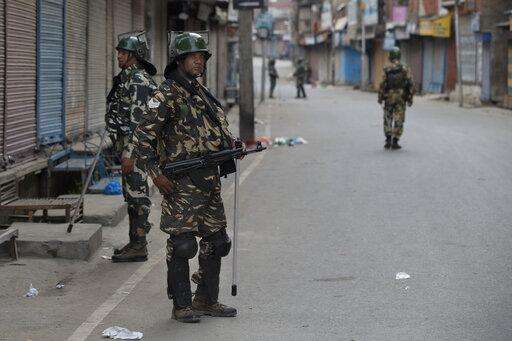 In this Tuesday, Aug. 6, 2019 photo, Indian paramilitary soldiers stand guard during curfew in Srinagar, Indian controlled Kashmir. The lives of millions in India's only Muslim-majority region have been upended since the latest - and most serious - crackdown followed a decision by New Delhi to revoke the special status of Jammu and Kashmir and downgrade the Himalayan region from statehood to a territory. Kashmir is claimed in full by both India and Pakistan, and rebels have been fighting Indian rule in the portion it administers for decades. (AP Photo/Dar Yasin) The Associated Press