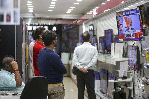Indians watch Prime Minister Narendra Modi address the nation in a televised speech, at an electronics store in Jammu, India, Thursday, Aug. 8, 2019. Modi says a federally-ruled Indian portion of Kashmir will help end decades-old separatism incited by archrival Pakistan. Describing changes in Kashmir as historic, Modi assures Kashmiri people that the situation in the region will soon become normal. (AP Photo/Channi Anand) The Associated Press