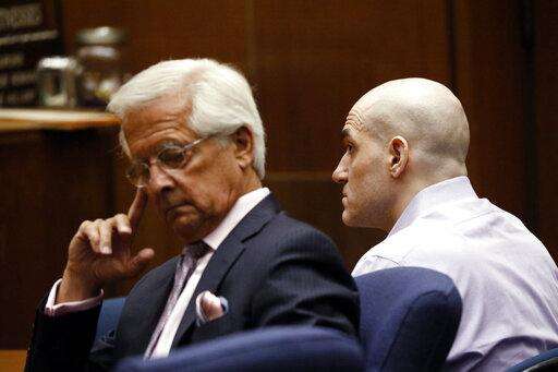 Michael Gargiulo, left, with his attorney Daniel Nardoni, listens as his guilty verdicts on all counts are read in Los Angeles Superior Court Thursday, Aug. 15, 2019. A jury found Gargiulo guilty of fatally stabbing two women and attempting to kill a third in their Southern California homes. Gargiulo, is also awaiting trial for a similar killing in Illinois in 1993. (Al Seib/Los Angeles Times via AP, Pool) The Associated Press