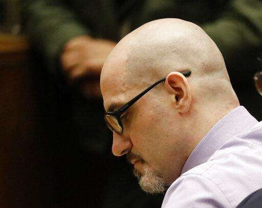 Michael Gargiulo listens as his guilty verdicts on all counts are read in Los Angeles Superior Court Thursday, Aug. 15, 2019. A jury found Gargiulo guilty of fatally stabbing two women and attempting to kill a third in their Southern California homes. Gargiulo, is also awaiting trial for a similar killing in Illinois in 1993. (Al Seib/Los Angeles Times via AP, Pool) The Associated Press