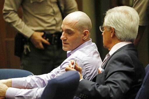 Michael Gargiulo, and his attorney Daniel Nardoni, listen as his guilty verdicts on all counts are read in Los Angeles Superior Court Thursday, Aug. 15, 2019. A jury found Gargiulo guilty of fatally stabbing two women and attempting to kill a third in their Southern California homes. Gargiulo, is also awaiting trial for a similar killing in Illinois in 1993. (Al Seib/Los Angeles Times via AP, Pool) The Associated Press