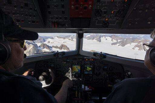 Meanwhile, pilots Andy Ferguson and Don Watrous bank the plane toward the blue-green spots, looking for the next target and pointing out stunning giant icebergs and signs of glacial retreat over the radio.